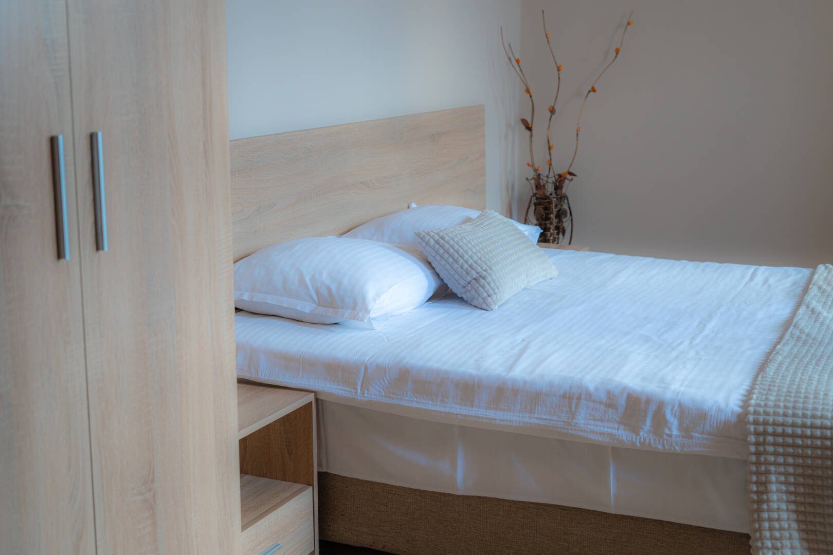 Cameră dublă Economy – baie proprie, mobilier modern, aer condiționat, uscător de păr, produse cosmetice, prosoape, TV LCD, acces gratuit la internet. Camerele duble nu au terasa. Cazare maxima: 2